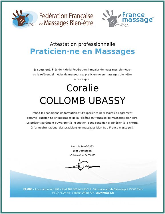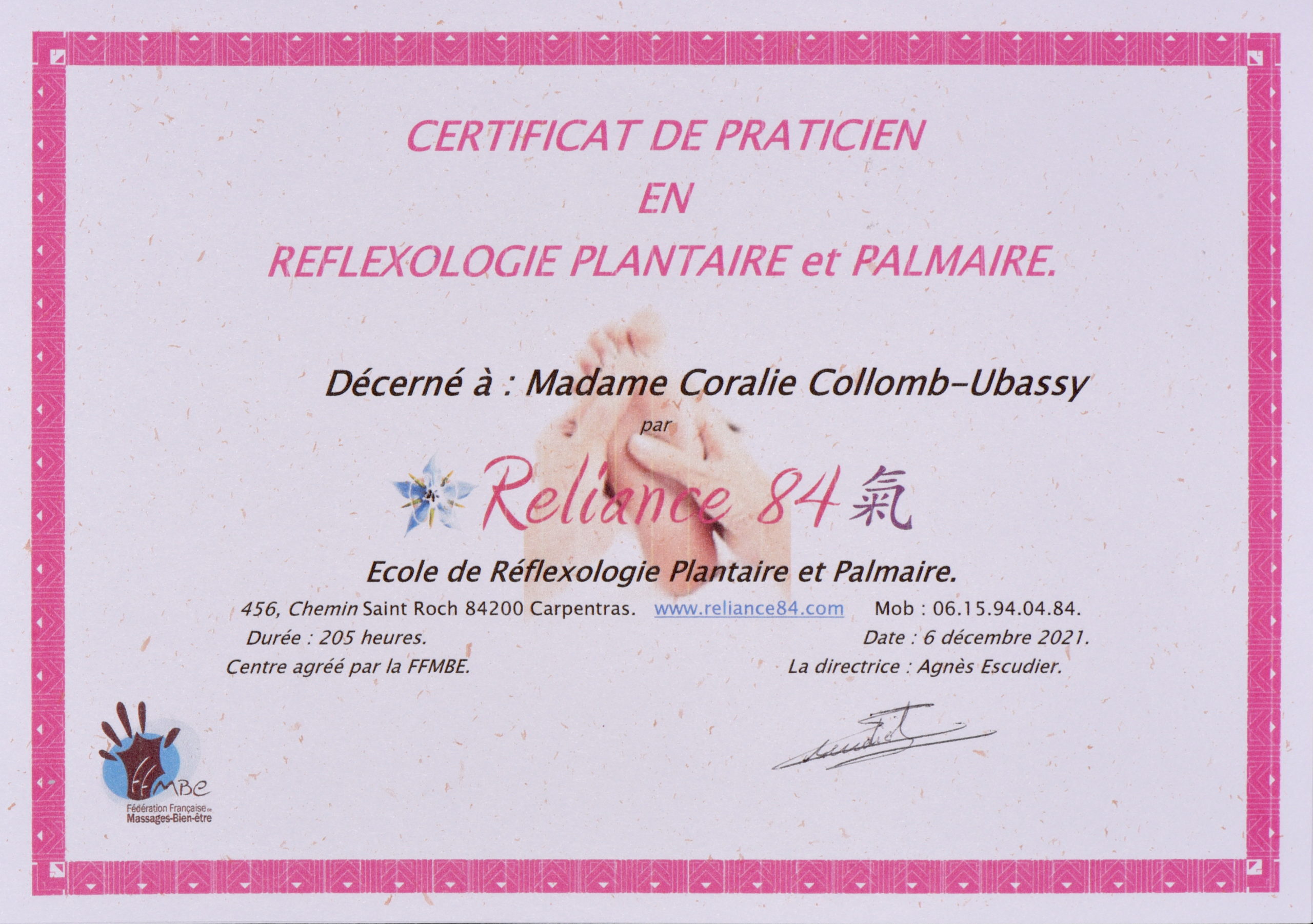 Je suis Coralie Collomb Ubassy, Réflexologue certifiée FFMBE, Thérapeute Reiki, Praticienne en médecine alternative, Praticienne massage anti-âge Kobido. J’accompagne les personnes ayant des troubles émotionnels & physiques à se libérer de leurs tensions et de leurs douleurs pour retrouver un équilibre serein et durable.